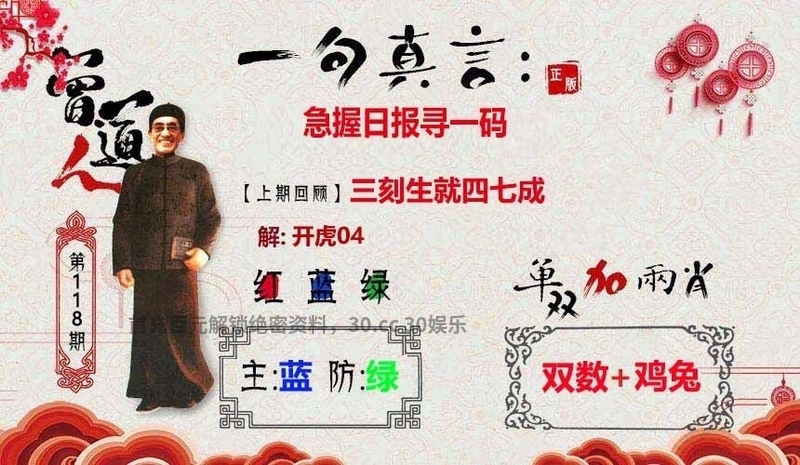 | 118期 | 牛 | 7尾 | 红双 | 22-28 | 猪31 |